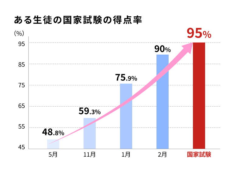 これまでの高い国家試験合格率を支えてきたノウハウを活かし、国家試験合格に必要な実力の引き上げを行っています。