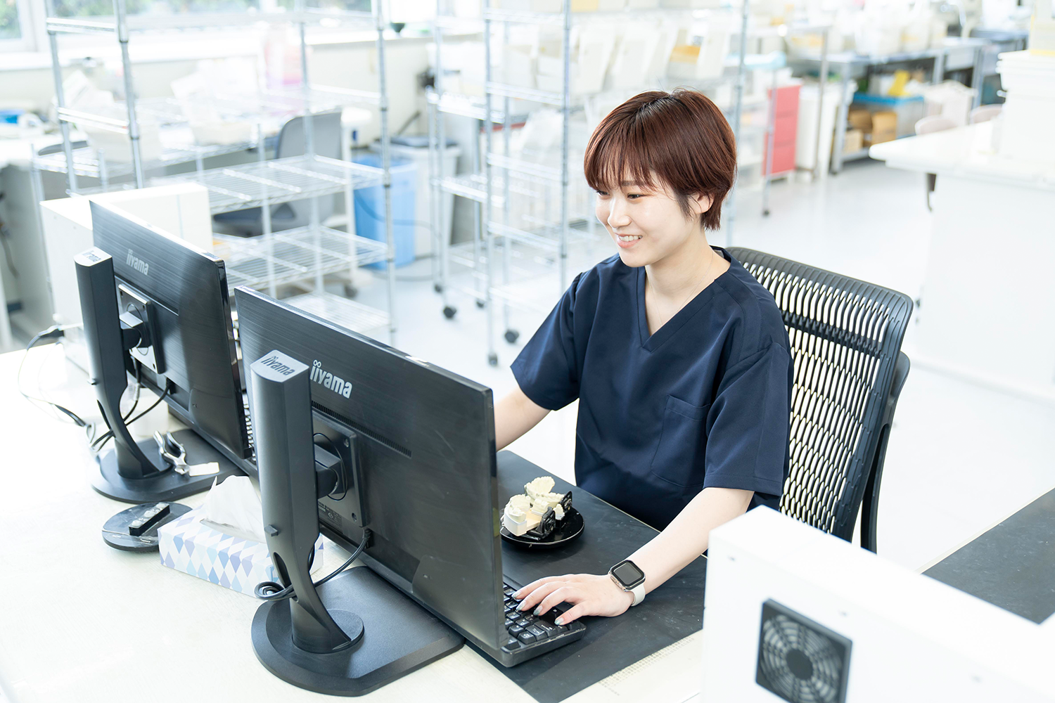 本校の校舎と隣接した歯科技工所があります。プロの仕事ぶりをいつでも見学することができ、インターンシップなども行うことができます。身近に技工所があることで自分の将来のイメージがしやすくなり、より堅実なキャリアプランを考えることができ、そのまま卒業後、就職も可能です。