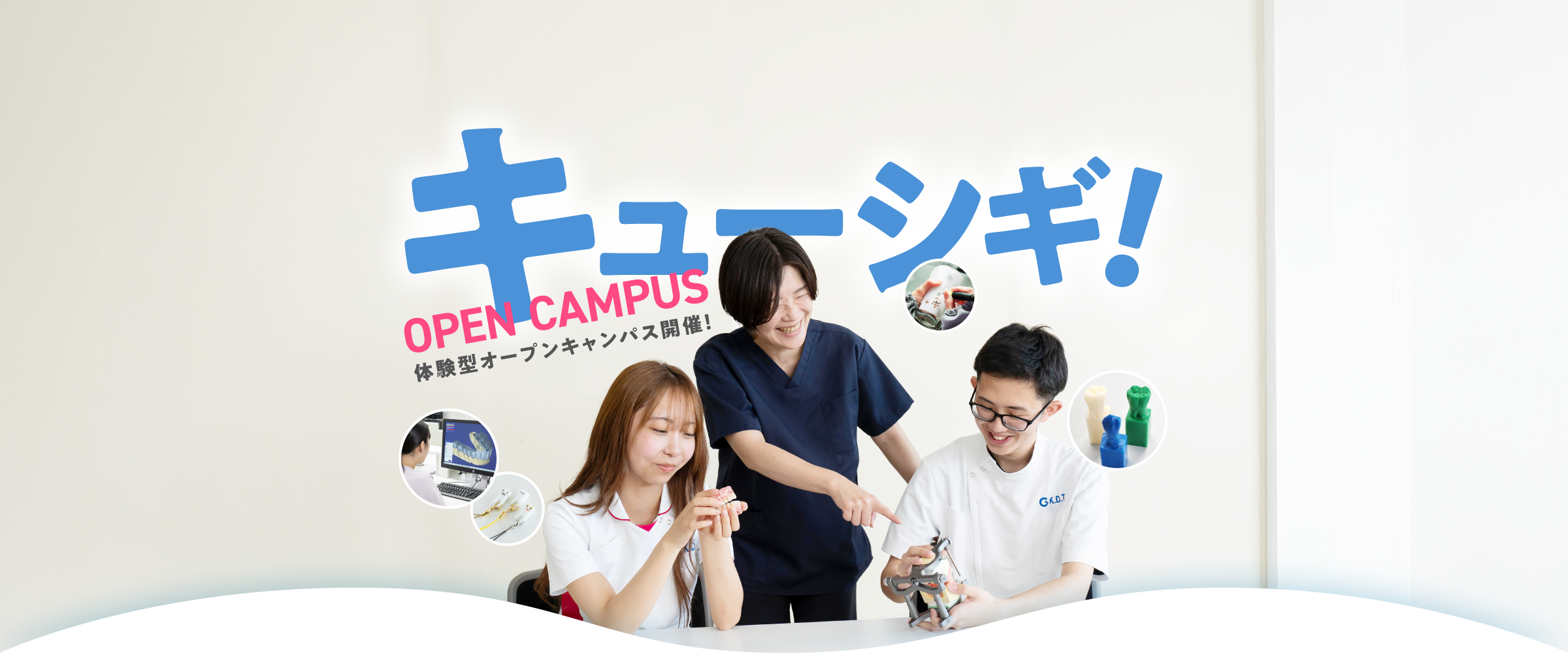学校や歯科業界のことがよく分かるオープンキャンパスを開催しています。どれも楽しみながら体験できる内容ばかり。各日程でメニューは異なりますので、詳しい内容はお問い合わせください!